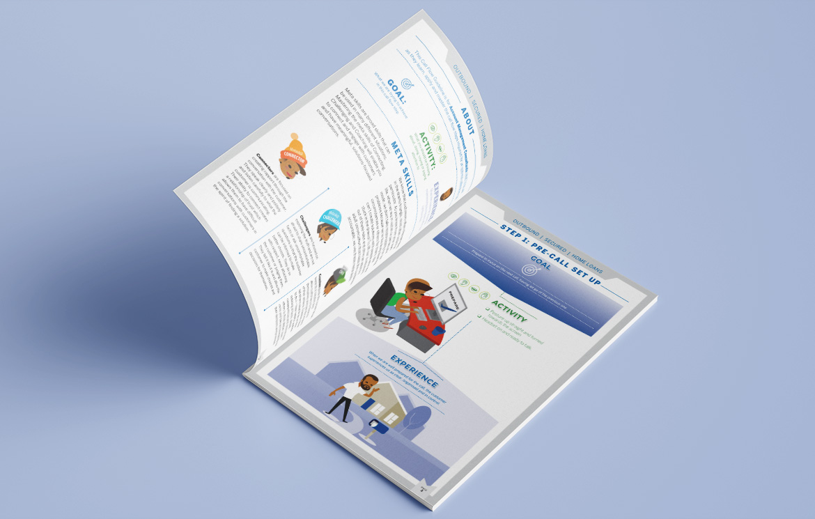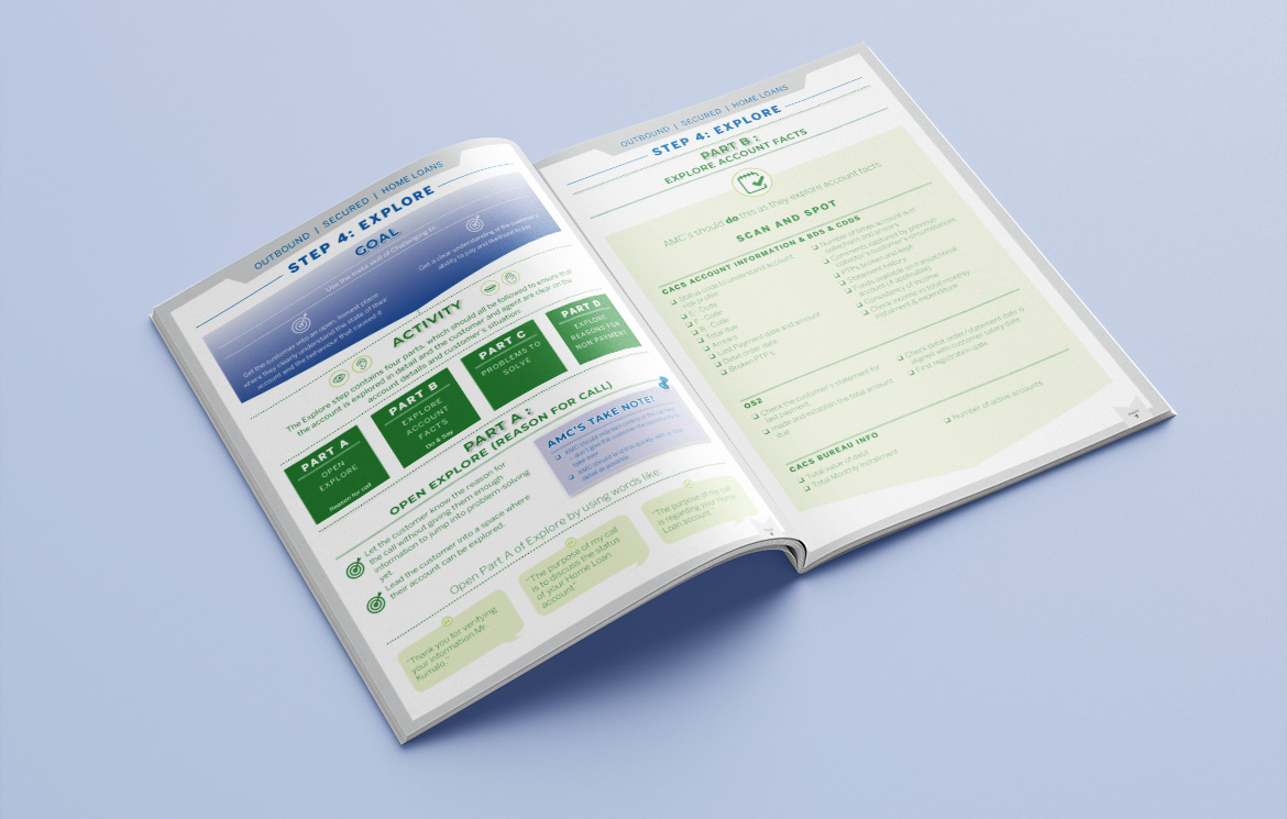 Design and layout of infographic-type content for call-centre training.