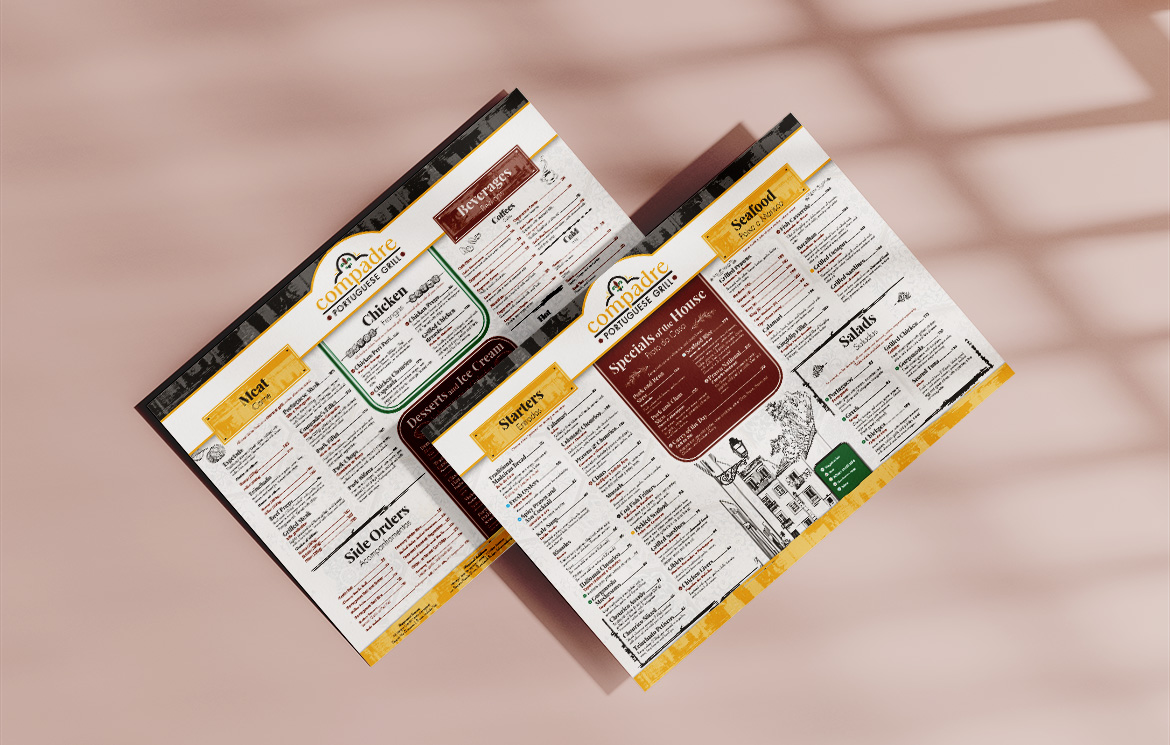 Design and layout of the menus for Compadre Portuguese Grill.