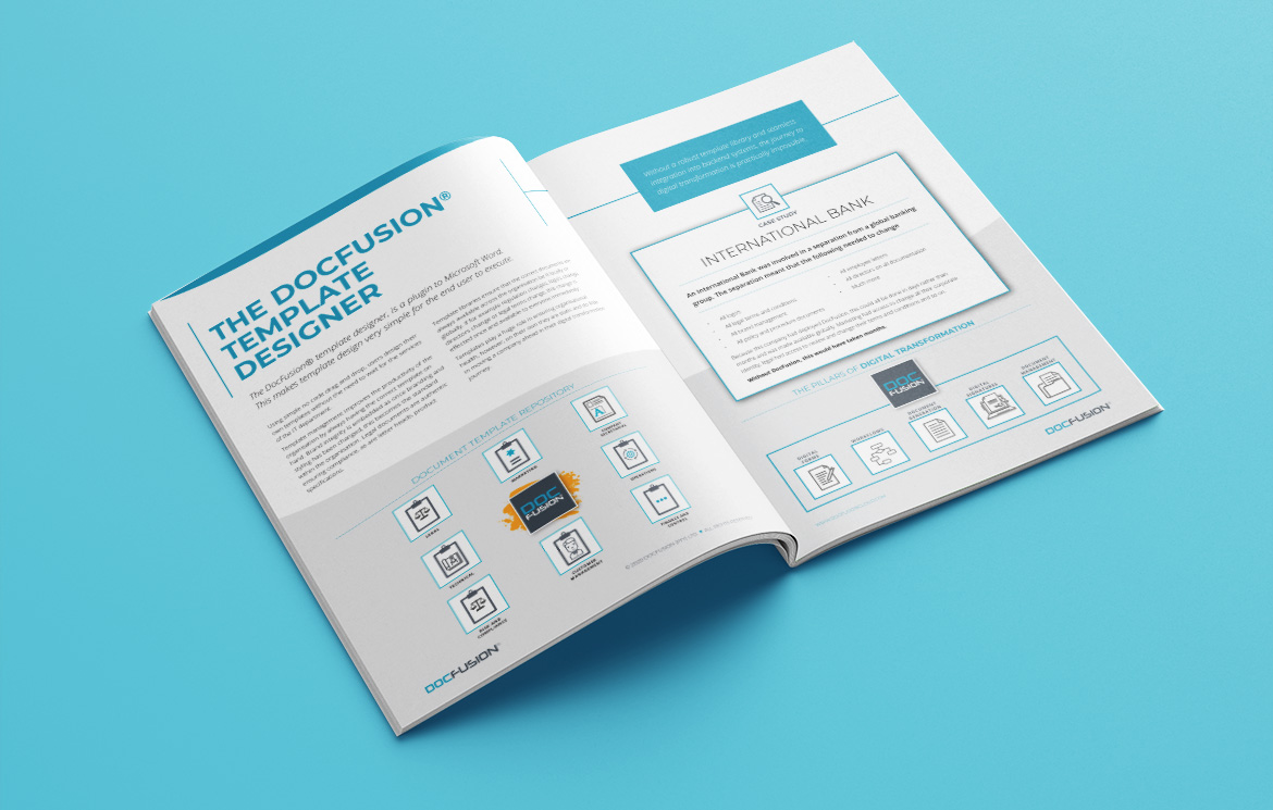 Design and layout of DocFusion’s product brochures. This is an example of one of them.