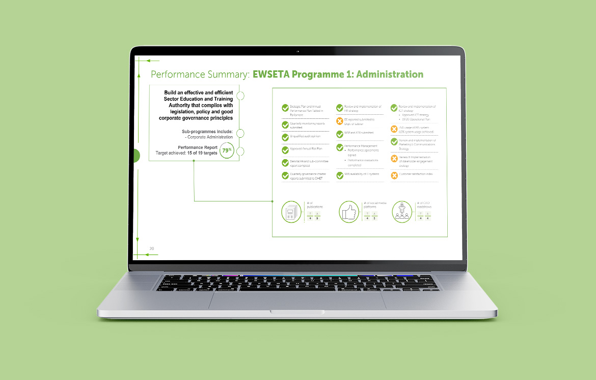 Design, layout, and animation of presentation of the annual financial and performance results.